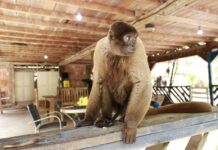 Um macaco-barrigudo (Lagothrix cana), espécie classificada como vulnerável à extinção, foi resgatado pelo Instituto de Proteção Ambiental do Amazonas (Ipaam) no km 26 da...