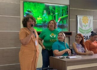 A presidente da Associação de Pais e Amigos dos Excepcionais de Manaus (Apae Manaus), Ione Tôma, e a secretária executiva da Secretaria de Pessoas...