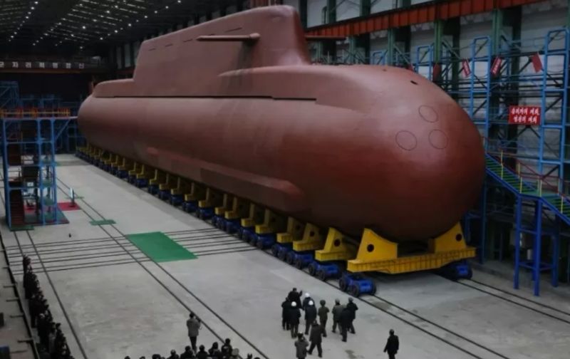 Kim Jong-un acompanhou hoje a obra no local. A KCNA informou que o líder norte-coreano inspecionou nesta quinta-feira a construção de um submarino estratégico lançador de mísseis de propulsão nuclear, com deslocamento de 8.700 toneladas.