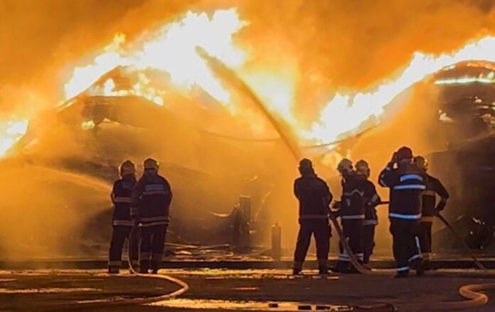 O sinistro ainda não foi controlado, tendo em vista que o material das edificações é composto por veículos e seus componentes plásticos, pneus, combustíveis e material plástico industrial, altamente tóxico e inflamável.