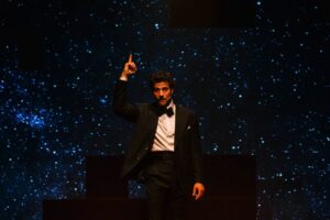 Mas a peça traz um olhar satírico sobre temas contemporâneos, e nesse mosaico com ares confessionais, os espectadores hão de se reconhecer em alguns instantes –o tal cavalheiro Roobertchay, que é o nome real do ator, também é um espelho mirado para a plateia. E o texto inclui até ironias ao próprio Chay, em sua figura de celebridade.