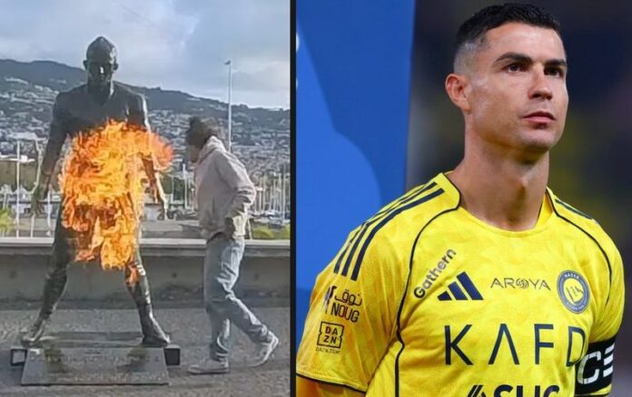 Estátua de Cristiano Ronaldo é queimada na Madeira, em Portugal - Foto: Reprodução / Instagram