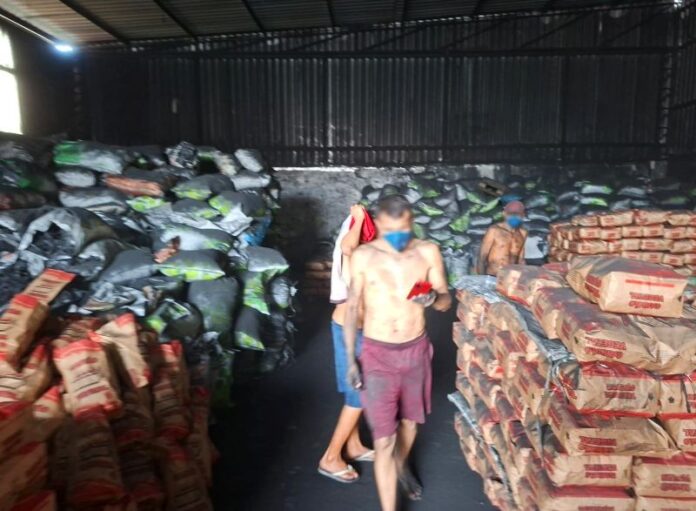Durante a fiscalização, a equipe técnica verificou que os trabalhadores realizavam o manuseio e o empacotamento do carvão utilizando equipamentos de proteção inadequados, o que pode causar danos à saúde devido à inalação do pó do material.