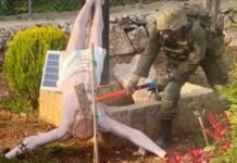 Houve um momento constrangedor quando o presidente da França, Emmanuel Macron, certificou-se de que o presidente descesse com segurança a rampa, depois voltou para cima para cumprimentar todos os veteranos. Esperava-se que Biden ficasse para os cumprimentos.