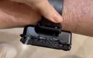 Em seguida, ao analisar a tornozeleira, ela verificou a existência de queimaduras no dispositivo. “O equipamento possuía sinais claros e importantes de avaria. Haviam marcas de queimadura em toda sua circunferência, no local de encaixe/fechamento do case”, diz o documento.