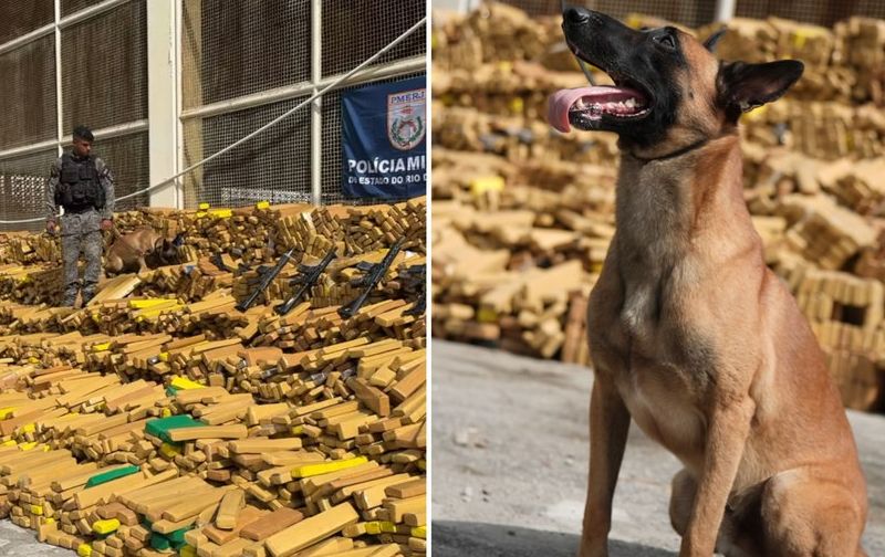 Cão farejador ajuda PM a apreender 48 toneladas de maconha na Maré - Foto: Instagram / @policiamilitar_rj