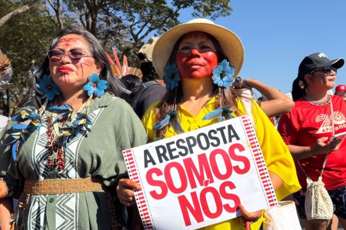 Segundo o Programa das Nações Unidas para o Meio Ambiente (PENUMA), terras geridas por povos indígenas com direitos assegurados apresentam taxas de desmatamento até 2 a 3 vezes menores do que áreas fora desses territórios, além de maior biodiversidade e maior armazenamento de carbono. O dado reforça que demarcar, proteger e garantir direitos aos povos indígenas não é apenas uma medida de justiça, é também uma estratégia concreta de enfrentamento às mudanças climáticas.