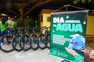 A Prefeitura de Manaus, por meio da Secretaria Municipal de Meio Ambiente e Sustentabilidade (Semmas), realizou uma manhã de atividades, nesta sexta-feira, 20/3, em alusão ao Dia da Água, celebrado mundialmente no domingo, 22. O evento aconteceu no Parque Municipal do Mindu, no bairro Parque 10 de Novembro, cuja primeira fase de revitalização foi entregue na ocasião, com reforma do anfiteatro, parquinho, chapéu de palha e instalação de iluminação em LED e de um bicicletário, com 12 bicicletas para uso no parque.