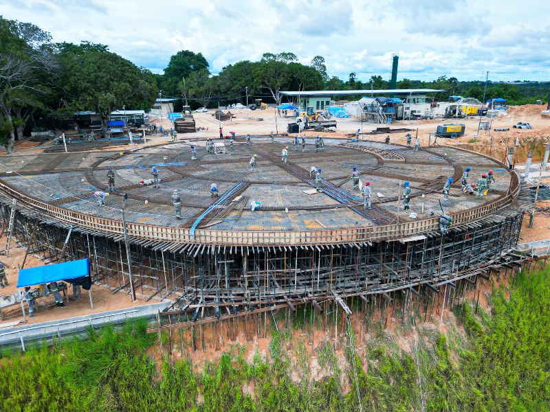 “A concreteira estará exclusivamente atendendo a obra, o dia todo. Temos uma empresa para fazer o controle tecnológico do concreto, in loco, com a equipe de laboratório. Tudo sincronizado entre as diversas frentes, de forma simultânea. E isso representa finalizar uma grande etapa da obra, para dar início a um novo desafio, que são a cúpula e suas hastes. As hastes, de 21 metros de altura, e a cúpula, com uns 7 metros de pé direito”, explicou o engenheiro da empreitada, Leandro Ladeira.