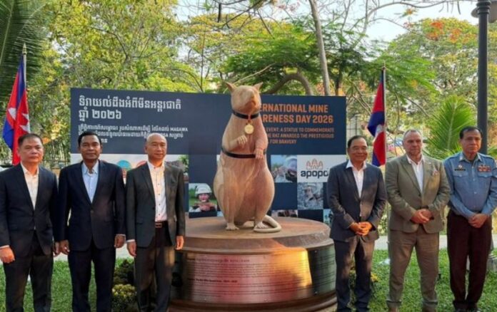 O Camboja inaugurou uma estátua em homenagem ao rato Magawa, animal farejador de minas terrestres, reconhecido por seu papel no salvamento de muitas vidas ao identificar explosivos deixados por guerras no país. As informações são do Cambodianess.