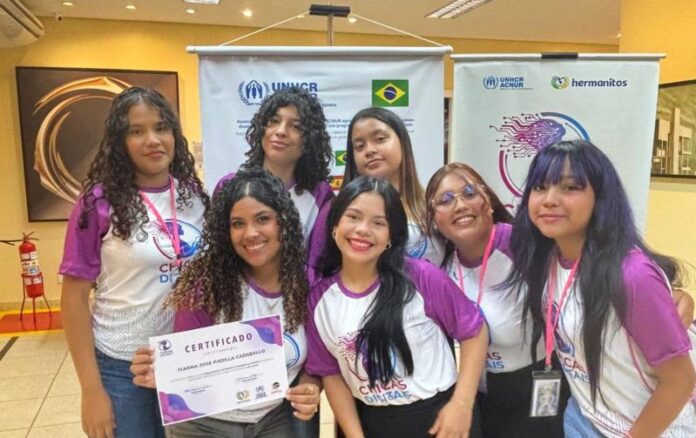Às vésperas de completar 18 anos, Sherli se conectou pelo celular para dar sua primeira entrevista virtual. Apesar de algumas oscilações na internet, a conversa fluiu muito bem. Sherli já fala português como uma manauara, quase não se nota o sotaque do espanhol venezuelano. Ela se expressa com espontaneidade, não à toa foi escolhida como cerimonialista da formatura da primeira turma do projeto Chicas Digitais. Realizada pelo Instituto Hermanitos em parceria com a Agência da ONU para Refugiados (ACNUR), a iniciativa promove uma imersão em informática, programação e inteligência artificial para jovens refugiadas e migrantes.